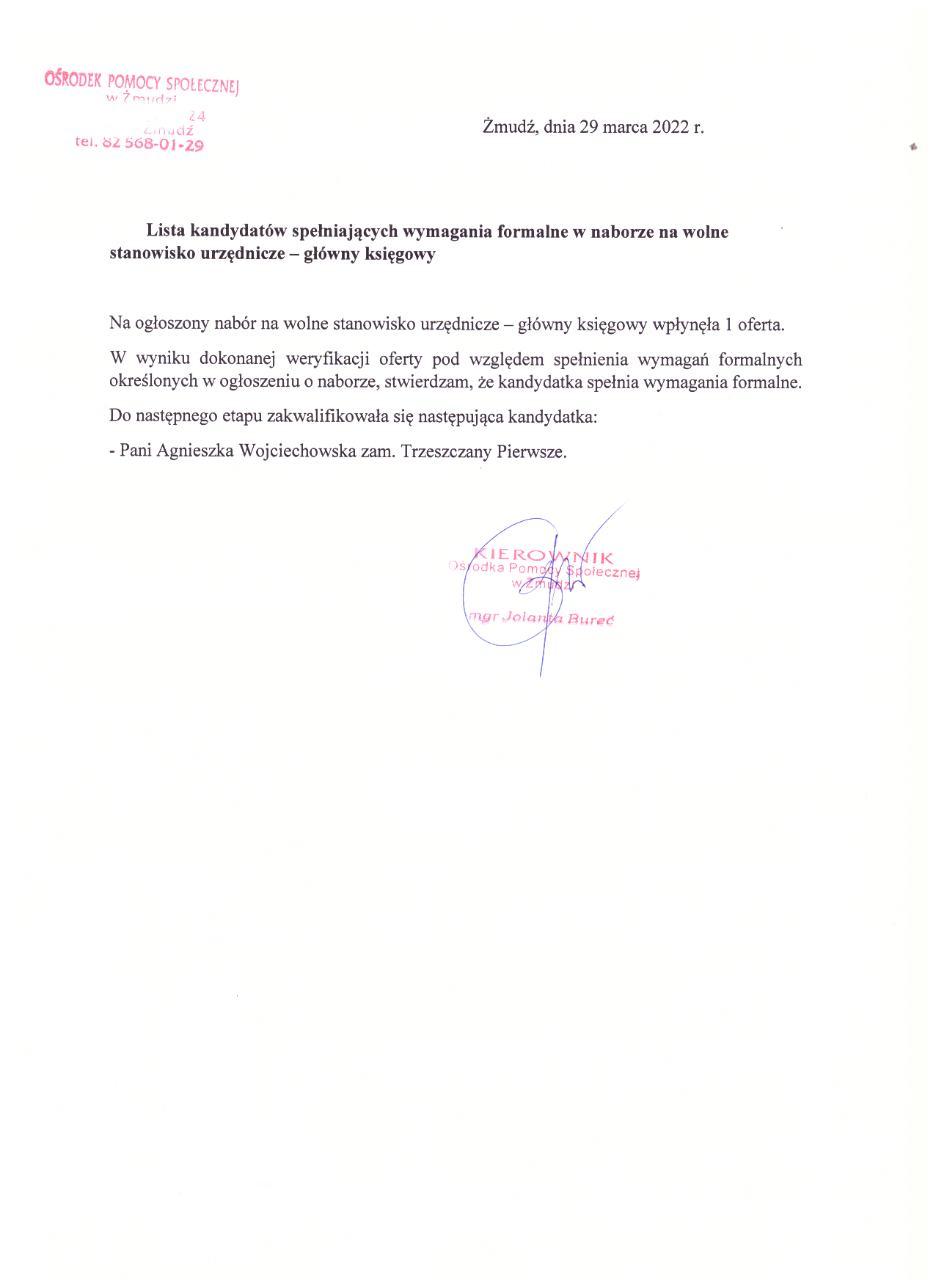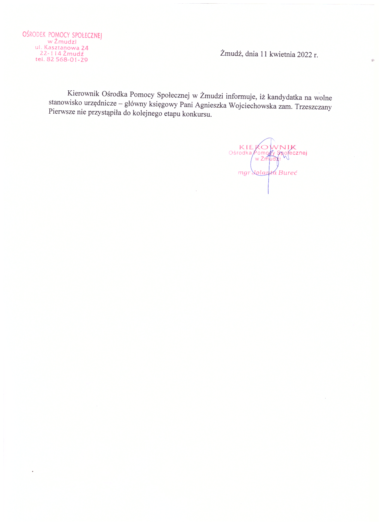 Ośrodek Pomocy Społecznej w Żmudzi Kasztanowa 24 22-114 Żmudź