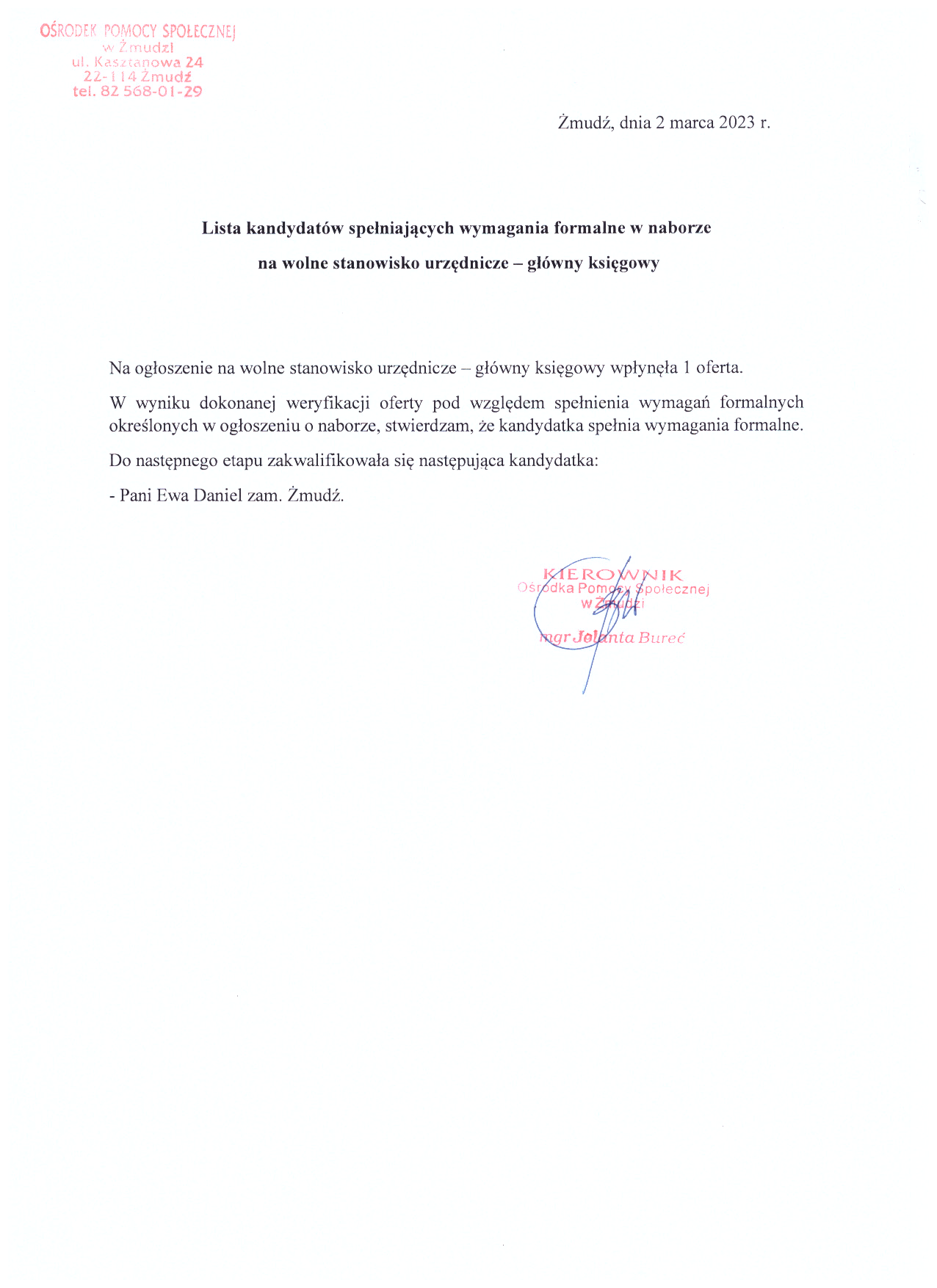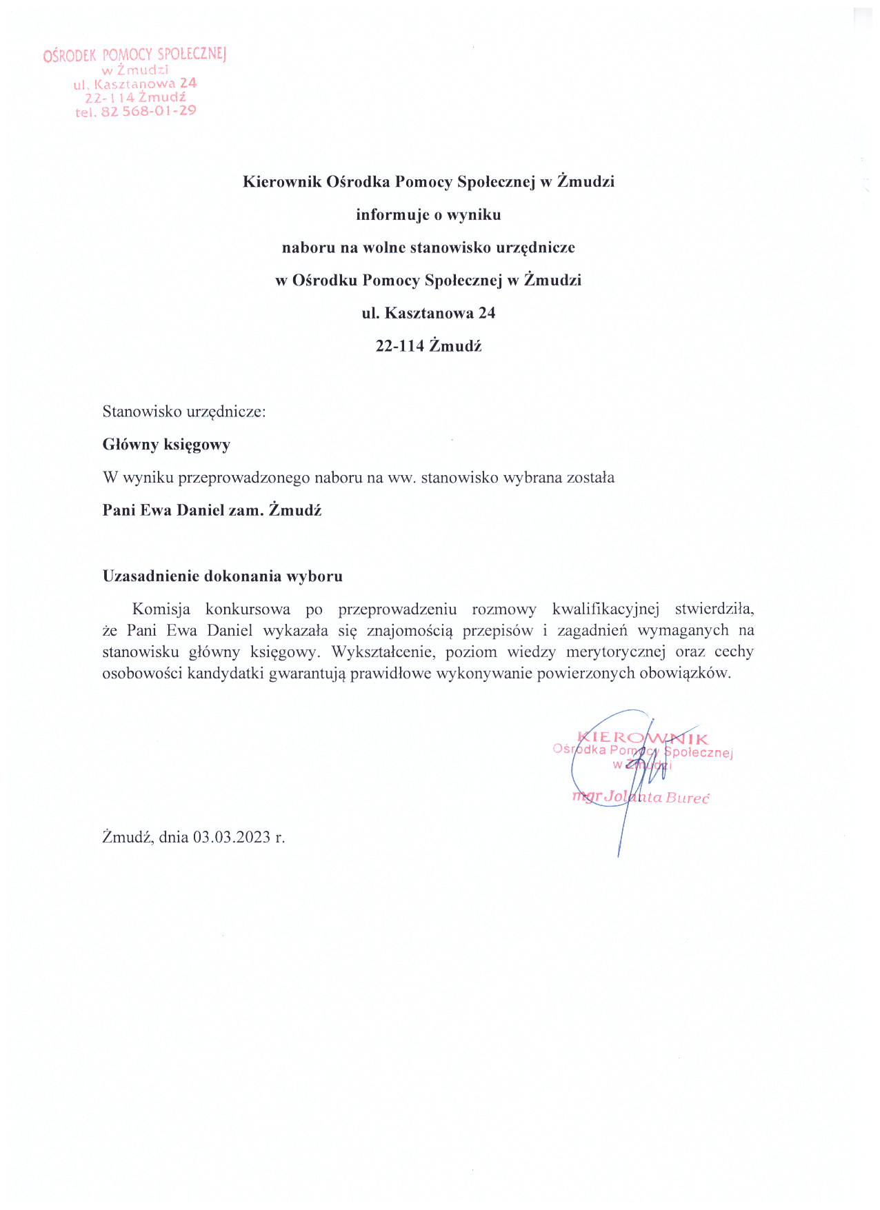 Ośrodek Pomocy Społecznej w Żmudzi Kasztanowa 24 22-114 Żmudź